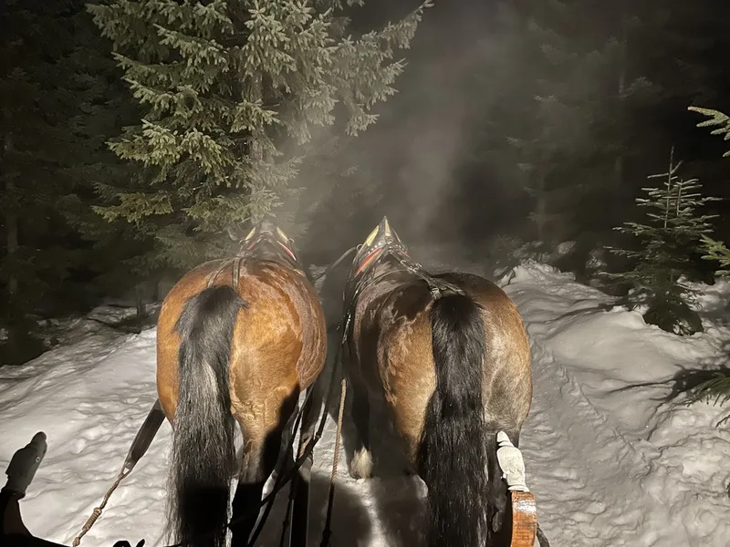 Der Schnee glitzert in der Sonne, oder die tiefschwarze Nacht wird vom Mond erleuchtet und die Schneekristalle funkeln. Glöckchen klingeln rhythmisch im Takt, zu den unter dem Schnee knirschenden Hufen, unserer kraftvollen Dachstein Noriker.